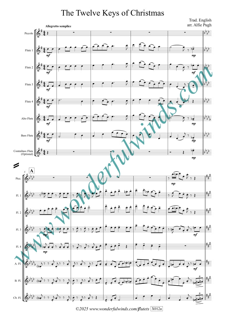 The Twelve Keys Of Christmas was written as a fun and challenging version of the ever-popular, interminable carol, but with a key change every verse! Almost every major key is used, except for one in the parallel minor, and although it starts simply, the piece quickly becomes sillier and sillier. The first three verses are written in the style of every theme-and-variations ever, before more and more quotes and mashups start to appear.